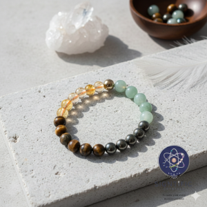 The seven colorful crystals represent each of the major chakras in the body. 🌈✨ They work together to clear blockages, boost energy flow, and bring emotional harmony. Each stone helps support a different area of your life — confidence, love, intuition, communication, and inner peace.